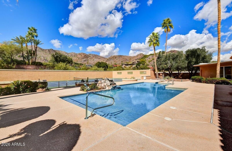 Listing details for 7816 47th St, Paradise Valley, AZ 85253 : Tremendous value provided in this fully buildable flat lot, surrounded by stellar mountain views in quiet Tatum Canyon, a prestigious, secluded location sought after by local residents. A meticulously cared for Dave Hanson custom home (5841 s.f.) currently occupies the lot, complete with diving pool and N/S tennis court. Graciously set back from the street, with a circular drive and gated front courtyard entry, the footprint is in place to create a new masterpiece for modern day living (NO PV HILLSIDE ORDINANCE ON THIS LOT, & NO HOA) The breathtaking 360 degree mountain views offer both solace and majesty. The Tatum Canyon location is convenient to shopping, dining, airport travel, and freeway access despite its secluded feel; one reason it is a favorite of locals.