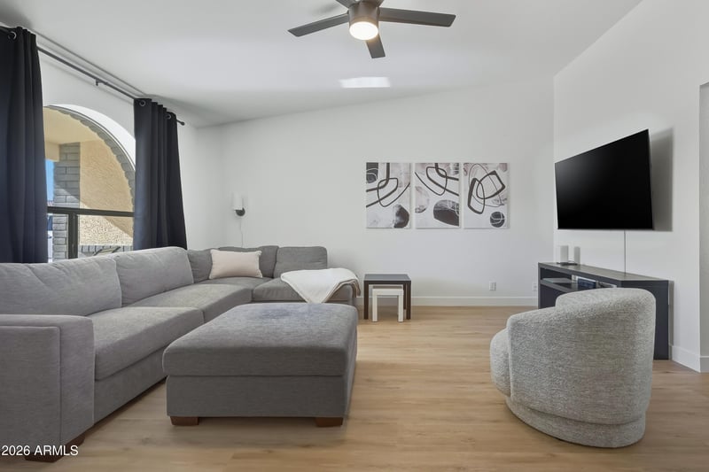 Listing details for 7824 Navarro Ave, Mesa, AZ 85209 : Welcome to 7824 E. Navarro Ave--a beautifully fully remodeled home offering nearly $100K in thoughtful upgrades. This turnkey residence is being sold fully furnished, including a golf cart, making it an exceptional opportunity in a sought-after Mesa community. This 2bed 2bath home features new flooring throughout, a 2-car garage, a new roof (installed 3 years ago with warranty), all new appliances, and elegant quartz countertops in the kitchen and bathrooms. Enjoy a spacious dual vanity, walk-in closet, and a generously sized laundry room designed for convenience. The inviting screened-in Arizona room provides the perfect space to relax and enjoy indoor-outdoor living year-round. Located in a community with great amenities, this home is truly move-in ready and a must-see.