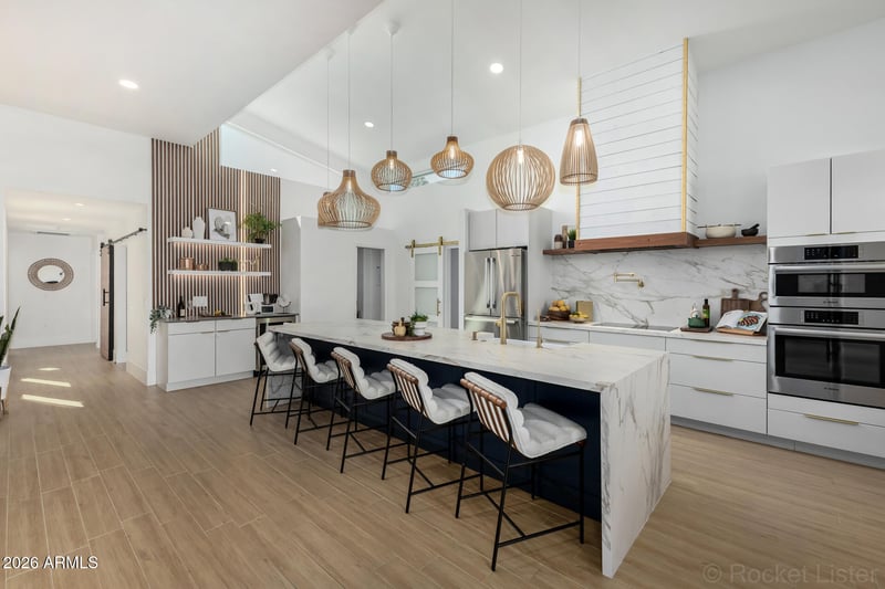 Listing details for 7847 Pecos Ln, Scottsdale, AZ 85250 : Stunning Fully Renovated 3 Bed/2 Bath home located in highly desirable area! Open Concept layout designed w/ exceptional attention to detail & high end finishes. No interior steps! Dramatic sliding wall of glass creates an effortless indoor-outdoor living space.The fabulous kitchen makes a statement of its own w/ the gorgeous island & elevated lighting. Accented by an entertainment bar & walkin pantry. You'll love the primary suite, boasting direct outdoor access, a 2nd fireplace, a walk-in closet, & a lavish bath w/soaking tub & rainfall shower, designer touches. Two additional bedrooms all with access to the backyard makes this such an inviting home! Lastly, the quaint backyard includes a patio area w/a lovely pergola, BBQ Area & a fire pit! See MORE... This home wont last long! Unbeatable location close to premiere shopping and dining!Two private patios, low maintenance landscape, HOA takes care of front lawn. Attached two car garage, plus community pool, spa, clubhouse and fitness room!
