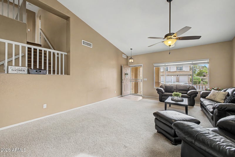 Listing details for 7922 Mary Ann Dr, Peoria, AZ 85382 : *Original owners who meticulously maintained & upgraded house. *Owned solar panels, saving hundreds of dollars per month on electricity. *Upstairs bathrooms redone with easy to clean tub/shower and master walk in shower. New granite countertops, sinks, hardware, and painted cabinet vanities. *Large kitchen with many cabinets, drawers, & counter space. Raised eat-in bar. Large pantry with additional shelves put in for storage. *Kitchen cabinets painted and new quartz countertops. Large single bowl stainless steel sink, new refrigerator and washer/dryer convey. *New fans and fixtures throughout house, including the back patio w/mister system. *New salt water, hot water tank, & reverse osmosis. Gas line to dryer is included. *Backyard newly redesigned with pavers, lush bushes, green grass & saltwater spa. *Large 3 car garage with cabinets for storage. *Low traffic street with New River walking path at the end, Rated A schools.