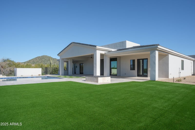Listing details for 7926 Morning Vista Ln, Scottsdale, AZ 85266 : Exquisite new custom-built home on 2.17 acres showcasing refined architecture and superior craftsmanship. This thoughtfully designed home features a lush front courtyard leading to a stylish iron entry door. The chefs kitchen is stunning with custom cabinetry, luxury appliances, and elegant quartz counters. The spacious great room affords telescoping sliding doors leading to the resort style back yard with a heated negative edge pool and spa. The primary bedroom features a spa-inspired bath with floor to ceiling glass enclosed shower and generous closet space. All four additional bedrooms are en-suite, including an attached casita with secondary front entrance. Lots of toys?...The oversized and extended length 4 car garage with epoxy flooring will be perfect. No HOA and room to grow!