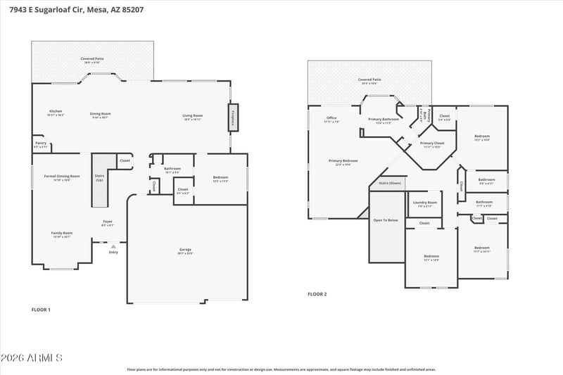 Listing details for 7943 Sugarloaf Cir, Mesa, AZ 85207 : Beautifully designed 5 bed/4 bath home in the gated Las Sendas community of Whispering Ridge, ideally situated on a quiet cul-de-sac. This well-maintained home blends modern comfort with stylish sophistication, featuring an open-concept floor plan with a spacious dining and living area that flows seamlessly into an expansive kitchen and family room with gas fireplace--perfect for everyday living and entertaining. The kitchen features a large island with breakfast bar, walk-in pantry, and a casual dining area that opens to a covered patio. With one bedroom and a full bath on the main level, the layout is both versatile and thoughtfully designed, while upstairs offers four additional bedrooms and a conveniently located laundry room. The primary suite includes a private balcony with mountain and city views, accessed by a slider, and overlooks the backyard. Recent interior updates include main level window coverings (2025), full interior paint (2022), two new HVAC systems (2022), and updated lighting and faucets (2022), while exterior updates include a new Pentair pool system (2024). The resort-style backyard features a heated pool and spa, along with a low-maintenance turf area--creating a true outdoor retreat. Located within Las Sendas, residents enjoy gated living with exceptional amenities including a golf course, pools, clubhouse, parks, and scenic trails.