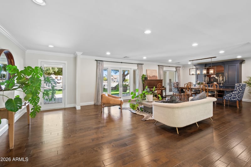 Listing details for 8001 Del Joya Dr, Scottsdale, AZ 85258 : Idyllic ''The Dels'' home at the end of a culdesac on a 14,747 sq ft lot adjacent to Rotary Park in the coveted ''3C's'' school district. Great curb appeal, open concept with extra large kitchen & family room area. Home features several key, hard-to-find features such as a private ensuite secondary bedroom, a 300 sq ft climate-controlled pool house, new roof coating, & your own private gate to the path to Rotary Park. Home was carefully remodeled & offers gas range, dual ovens, SubZero built-in refrigerator in the wide, bright kitchen, wood floors throughout, custom wardrobe cabinetry in the primary closet, & crown molding. French doors take you to both front & rear patios. Rear yard features two grassy areas, outdoor FP, pool, BBQ, privacy landscaping, & plenty of deck space to entertain.