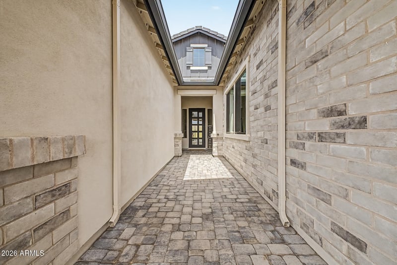 Listing details for 8018 Jaeger St, Mesa, AZ 85207 : Tucked inside the gated Monteluna community in Northeast Mesa, this single-level luxury home offers a rare combination of privacy, comfort, and everyday livability. Positioned on a north/south lot with no neighbor across the street or to the east, the setting feels open, quiet, and removed--yet still close to everything. From the moment you step inside, the home feels warm and inviting with 10-foot ceilings, wood beam accents, crown molding, and expansive tile flooring throughout. The great room design creates a natural gathering space, enhanced by a 3-panel sliding glass door that opens seamlessly to the backyard--perfect for indoor-outdoor Arizona living. At the center of the home, the gourmet kitchen is built for connection--whether it's casual mornings at the oversized island or hosting friends and family. Featuring quartz countertops, a striking brick accent wall, double pantry setup (walk-in + butler's), and stainless appliances with gas cooktop and built-in oven, it blends style with everyday function. The owner's suite is designed as a private retreat, with generous space, 10-foot ceilings, and a spa-like bath featuring dual vanities, soaking tub, and a large walk-in shower--a place to unwind at the end of the day. Step outside and the lifestyle continues. The covered patio with pavers, ceiling fan, and speaker pre-wire creates an ideal outdoor living space, overlooking a large, low-maintenance backyard with synthetic grass--perfect for relaxing evenings, entertaining guests, or simply enjoying the Arizona weather. Additional features like a 3-car garage with service door, soft water and reverse osmosis systems, and a well-designed laundry room with storage and workspace add everyday convenience. Living in Monteluna means enjoying a gated environment with a sense of privacy and community, all while being close to hiking, outdoor recreation, shopping, dining, and freeway access.