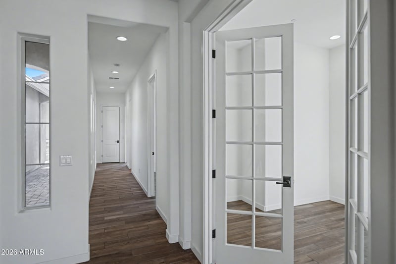 Listing details for 8032 June Cir, Mesa, AZ 85207 : Popular ''Residence 6'' floorplan, Never lived in Blandford home in gated community of Monteluna. In the desert uplands of Mesa, where mountain, city lights, + sunset views are the norm, this home is loaded w/upgrades and the community and surrounding area is 1st class. The home offers a 20' wall of glass, wood look tile thru out, walk in shower w/frameless glass and quartz surround, upgraded Kitchen Aid appliances, granite and quartz counters, granite backsplash, white shaker cabinets w/4'' crown molding, surround sound in great room+patio+den+primary bedroom, French doors to office/den, gas stub for outdoor kitchen, pre-wire for pendant lights over kitchen island, + more on a cul de sac lot! All of this in a home where you're just minutes to hiking, biking, golf, shopping, dining and mor