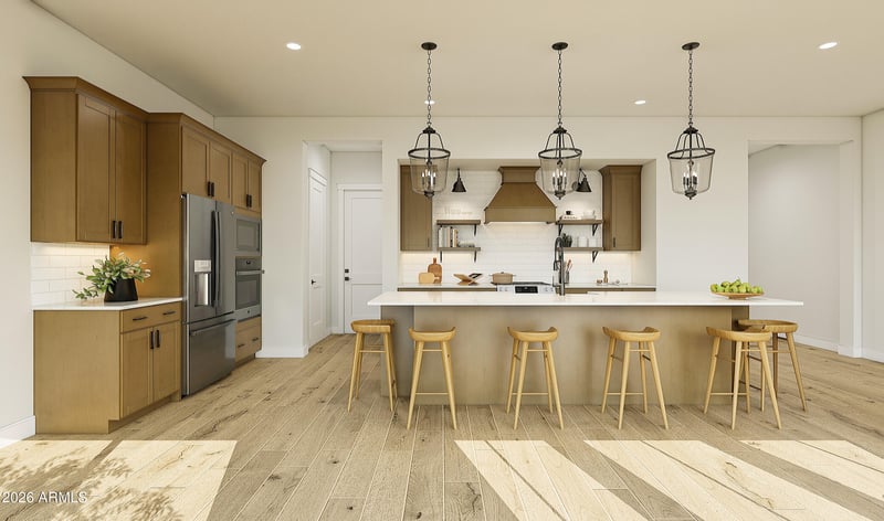 Listing details for 8035 Harmont Dr, Peoria, AZ 85345 : Live with ease at Manor at Legacy Place, near Loop 101, Westgate, and top shopping and dining. The two-story Avalon plan features farmhouse-inspired finishes and a bright, open great room with a 15' sliding glass door leading to a covered patio for seamless indoor/outdoor living. The gourmet kitchen shines with white cabinetry, marble-look quartz countertops, and GE stainless-steel gas appliances, including a French-door refrigerator. Upstairs, a spacious loft adds flexible living space. The private primary suite offers a coffered ceiling and spa-like bath with a freestanding soaking tub, while two additional bedrooms provide comfort for family or guests. ^^Up to 6% of Base Price can be applied towards closing cost and/or short-long-term interest rate buydowns when choosing our preferred Lender. Additional eligibility and limited time restrictions apply. Ask for more information!