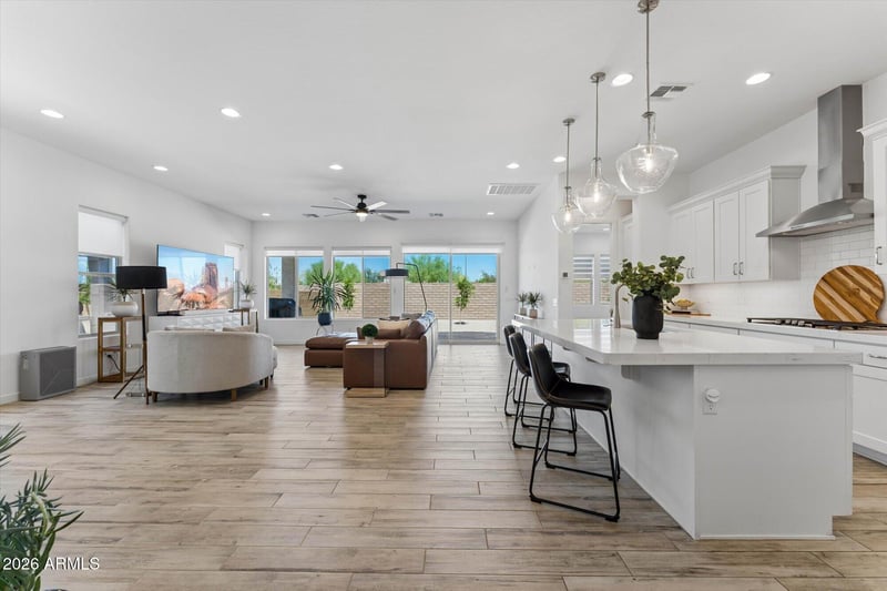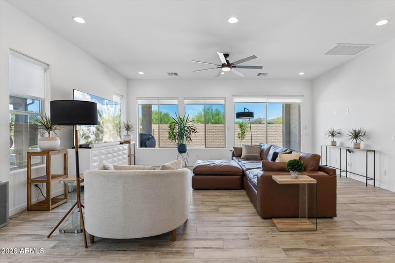 Listing details for 8044 June Cir, Mesa, AZ 85207 : Priced to Sell! Lowest price home in the beautiful community of Monteluna! This beautiful lightly lived in home on premium cul de sac lot is surrounded by mountain views in a gated neighborhood thoughtfully designed with all single-level homes. This home features 3 bedrooms, 3 full bathrooms, & an office for a separate workspace. Features and upgrades include beautiful wood looking floor tile throughout entire home (NO CARPET), CUSTOM MOTORIZED BLINDS throughtout, Upgraded GE profile Gas cooktop & appliance package, Solid Iron entry door, 3cm thick upgraded quartz in kitchen for an elegant look, ampule can lighting & ceiling fans throughout, laundry rm with sink, windened paver driveway, extended paver patio with paver walkway at side of house, 3-car tandem garage, EV Charging Outlet, & Much More! NO neighbors to the rear! Rather than neighbors rooftops, your view of mountain peaks are visible from the great room and patio. Ideal backyard space to create your own dream oasis. Monteluna offers a serene and picturesque setting with lush open areas, a pickleball court, expansive park, ramada, fire pit, and sports court. Conveniently located with a quick commute to Scottsdale and Sky Harbor Airport, this home also offers easy access to Usery Park, Saguaro Lake, and Salt River for outdoor adventures. Close to top rated schools, great restaurants and shopping. Don't miss your chance!