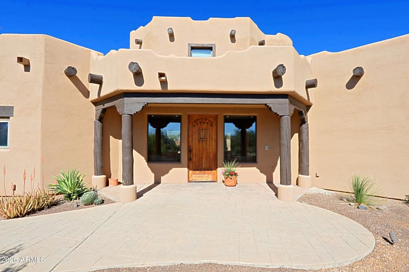 Listing details for 8066 Villa Cassandra Dr, Scottsdale, AZ 85266 : Classic & charming, experience genuine north Scottsdale casual elegance & romance reminiscent of the Boulders, without the high HOA! This gracious custom-built home in the highly sought-after Sand Flower community rests on a quiet & peaceful 3/4 acre lot with N/S exposure & no through traffic. Witness breathtaking mountain views of Spur Cross Regional Area & brilliant sunsets from the elevated veranda. One of a kind home offers generous room sizes in an intuitive floor plan that centers around the picturesque back yard gardens & pool area. Gleaming saltillo tile flooring, solid Vega beams & hand-carved Mexican accents add to the charm. New roof in 2020, resealed in 2025, newer HVACs, new water heater, etc. Come fall in love & make this treasure your own. Your hacienda haven awaits you!