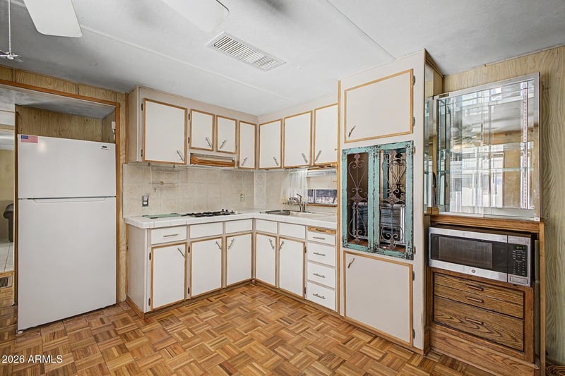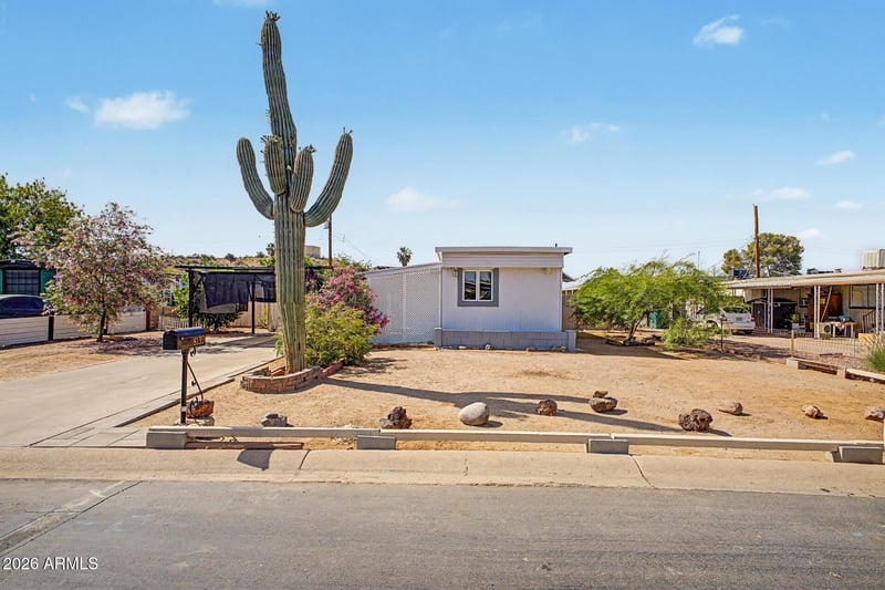Listing details for 8139 Bonnell St, Mesa, AZ 85207 : Charming mobile home on its own land offering the perfect blend of comfort, character, and freedom with no HOA or lot fees. Mature saguaro cacti greet you on the property, adding to the authentic desert charm. Originally expanded to create the feel of a large double-wide, the home provides additional living space and a comfortable layout. Several important updates have already been completed, including a new metal roof installed about 3 years ago, A/C replaced approximately 5 years ago, and a water heater installed about 2 years ago. Inside, the home has largely maintained its original character, offering a great opportunity for personalization while already featuring a new sink, faucets, and shower in the bathroom. With its own land, desert surroundings, and no HOA restrictions, this property offers a unique opportunity to enjoy affordable living with plenty of flexibility.
