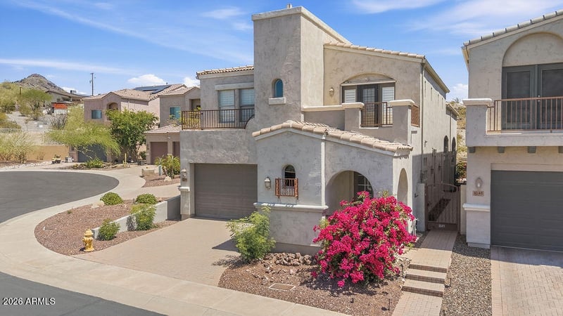 Listing details for 8149 13th Pl, Phoenix, AZ 85020 : Experience elevated desert living in this upgraded 4-bedroom, 2.5-bath home nestled in a gated cul-de-sac with sweeping mountain views. Inside, you'll find a bright and spacious floor plan with dramatic cathedral ceilings, stylish upgrades, and two inviting fireplaces. The downstairs primary suite offers a peaceful retreat with a two-way fireplace, spa-style bath, jetted tub, and separate shower. The kitchen is beautifully appointed with stainless steel appliances, granite countertops, and travertine floors. Step into the private backyard featuring a third fireplace, ideal for entertaining or relaxing year-round. Newer AC units (2021) add peace of mind. Conveniently located near the 51 Freeway, top schools, hiking, shopping, and dining.