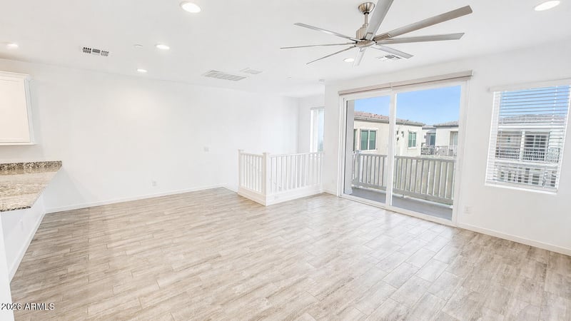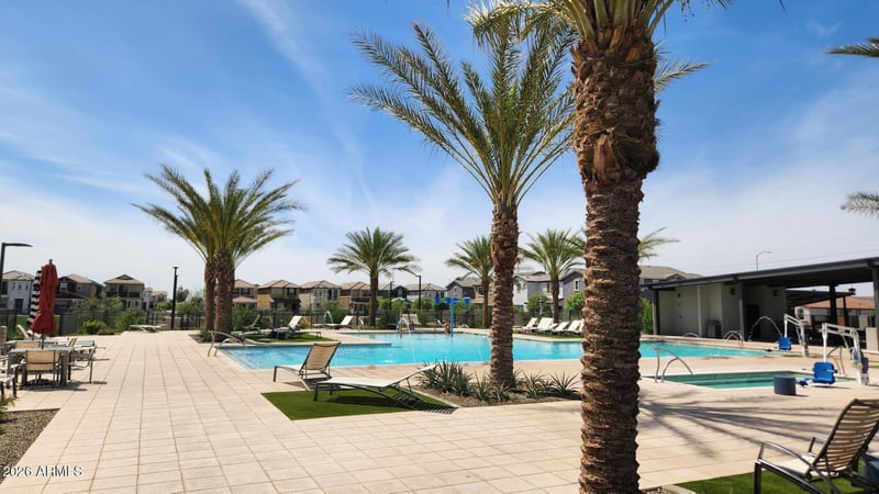 Listing details for 8149 Petunia Ave #1046, Mesa, AZ 85212 : Rare corner unit in a prime Mesa location just minutes from Google. Enjoy added privacy with no neighbors on one side and guest parking next to the garage. Bright interior features tile wood-like flooring, remote-controlled shades, recessed lighting, and ceiling fans throughout. Kitchen offers granite countertops, stainless steel appliances, upgraded cabinets, large pantry, and island with seating for four. Granite countertops in kitchen and bathrooms. Smart home with centralized Cat5 and cable. Epoxied 2-car garage with storage, 220V power, and multiple outlets. Includes soft water system, digital water heater, fire sprinklers, washer, dryer, and refrigerator. Community features pool, pickleball, basketball and tennis courts, dog park, playground, and greenbelts.