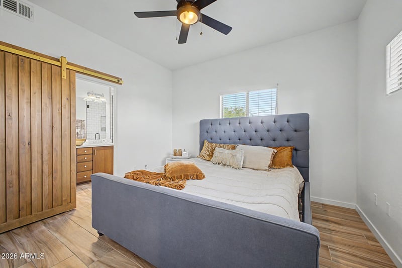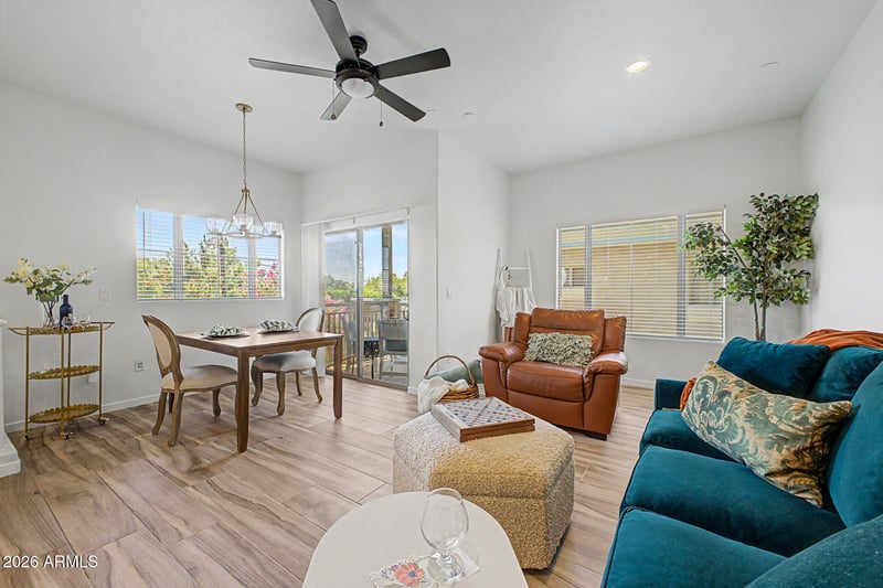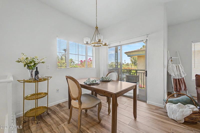 Listing details for 815 Rose Ln #116, Phoenix, AZ 85014 : Fantastic opportunity to own this end-unit 2-bedroom, 2-bath townhome in Andare Condominiums! Discover a serene living room with high ceilings, a soothing palette, new blinds, and attractive wood-look flooring. The gourmet kitchen comes with quartz counters, wood shaker cabinetry, a new stainless steel refrigerator, new microwave, new dishwasher and a pass-through with a breakfast bar for casual dining. The primary bedroom includes a private bathroom with a custom barn door, bidet toilet, dual sinks and a walk-in closet for an organized wardrobe. The lower level includes an additional bedroom, a full bathroom, and a laundry closet. Unwind at the end of a long day on the lovely balcony, offering tranquil views of the neighborhood or take a dip at the pool or spa. Don't miss out on this one