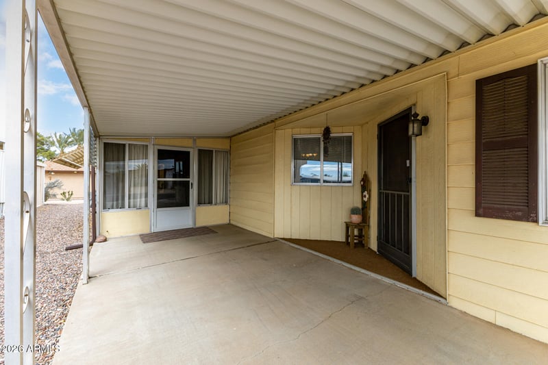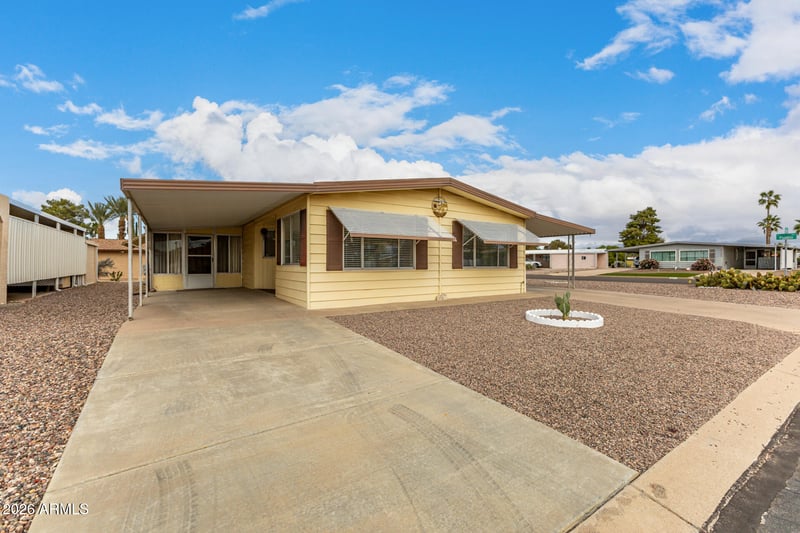 Listing details for 8221 Pueblo Ave, Mesa, AZ 85208 : Furnished Well maintained corner lot home with 2 bedrooms 2 bathrooms and an Arizona room. The Backyard has a great view of the golf course. Spacious living room with an electric fireplace .Kitchen has a dining area and a breakfast bar. Double sink vanity in the primary bathroom. Inside laundry. Separate workshop and a storage shed. Screened patio offers extra space for entertaining. Ac/heating 2017. Roof recoated 3 yrs ago. Washer dryer 2 years old. Pet friendly, This home can be financed with a conventional loan.
