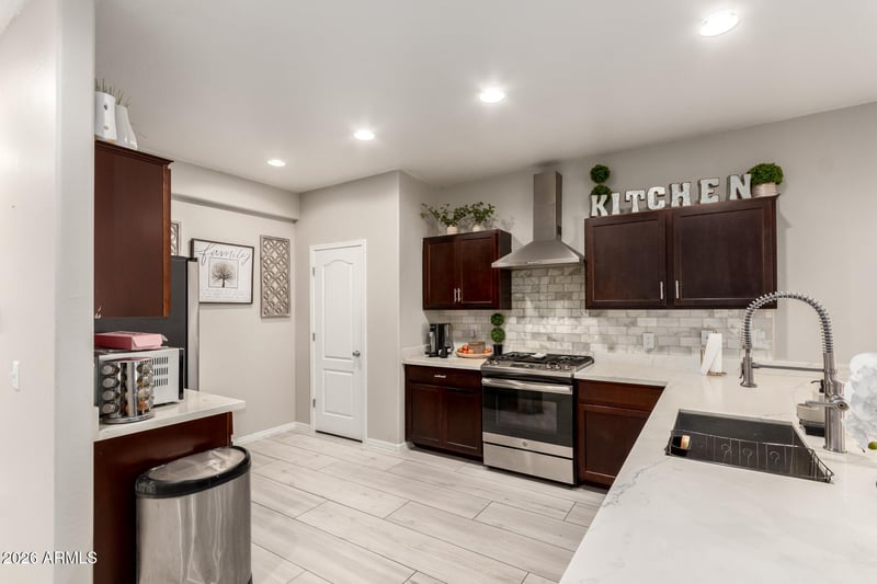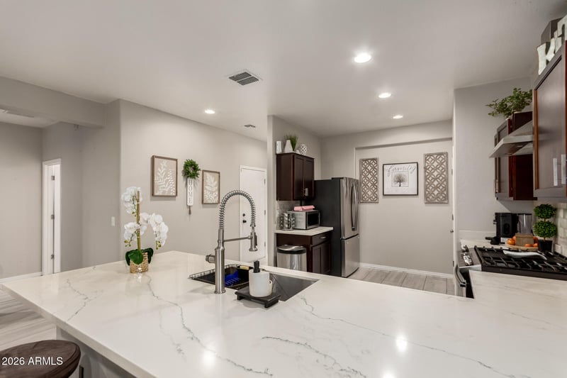 Listing details for 8224 Pueblo Ave, Phoenix, AZ 85043 : This 1,551 sq ft home sits on a 6,584 sq ft corner lot and features updated kitchen and bathrooms with beautiful quartz countertops. Gorgeous tile flooring flows through the dining room, kitchen, great room, and both bathrooms, while all three bedrooms offer neutral carpet. The backyard is perfect for entertaining with a built-in BBQ, pavers, and a gazebo.
