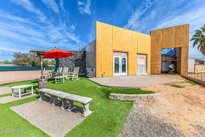 Listing details for 8226 Shea Blvd, Scottsdale, AZ 85260 : Discover an exceptional 1-acre parcel in the heart of Scottsdale at 8226 E. Shea Blvd - a rare, no HOA property offering privacy, flexibility, and tremendous potential. Currently mid-construction on a 3,150 sq ft fully permitted and approved home. Permits include full city approved lighted plan for sport courts, pickle ball court and ball field for the entire back of the 1 acre property. Septic system is already installed, inspected and approved. This offering is sold strictly as-is, making the true value in the expansive lot and the flexibility to add a carriage home, guest home and additional square footage. This offering is Ideal for discerning builders, or investors, or Vacation rental companies who want a Residential Resort Style home in their portfolio. The peaceful neighborhood setting provides serenity, while the location delivers unbeatable convenience: minutes from premier shopping, fine dining, entertainment, top-rated Scottsdale schools, golf courses, parks, and quick access to the loop 101 Freeway. This offering is sold strictly as-is, making the true value in the expansive lot and the flexibility to add the desired custom amenities, a carriage home, guest home, RV and collector car garage, and additional square footage***Seller has fully City of Scottsdale approved plans to build in documents section, along with septic approval***