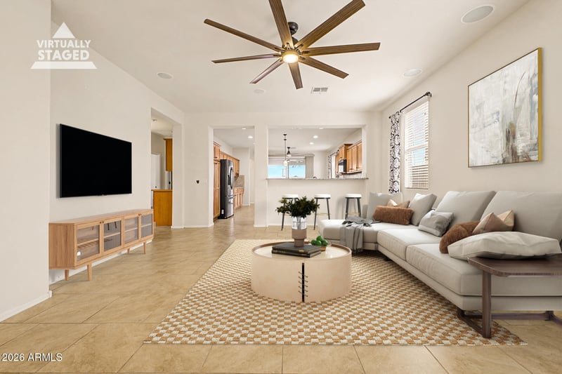 Recent upgrades provide peace of mind and long-term efficiency, including a new HVAC system (2025), full irrigation replacement (2024), exterior repaint (2024), custom front entry door w/ decorative glass (2023), paver enhancements (2022), R-38 insulation, ceiling fans throughout, water softener, living room pre-wiring for in-ceiling surround sound, and a garage with built-in storage. Enjoy a truly private backyard with no rear neighbors, backing directly to the newly opened Laveen Heritage Park. The outdoor space is designed for low-maintenance enjoyment and includes a saltwater pool with water feature, refreshed pool decking, pool safety fencing (2025), artificial turf, mature desert landscaping, and a covered patio with gas BBQ stub--perfect for Arizona outdoor living.