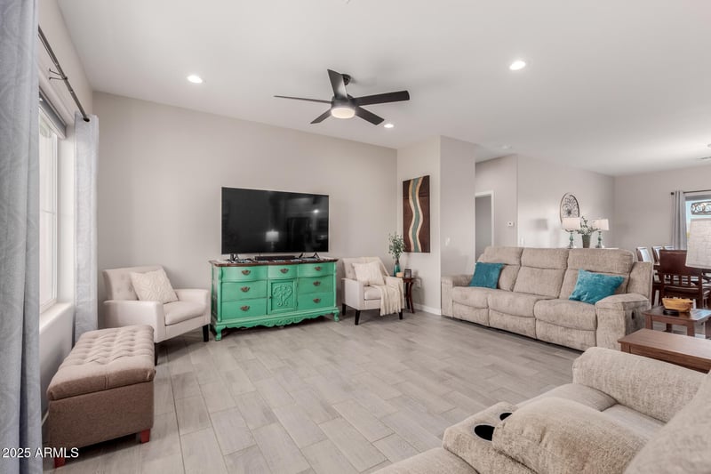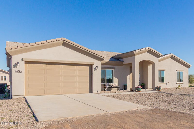 Listing details for 825 297th Dr, Buckeye, AZ 85396 : Welcome to your ideal desert retreat! This stunning 4 bed/2 bath home sits on over an acre lot offering the perfect blend of modern comfort & rural freedom. The open-concept interior features a gourmet kitchen with white cabinetry, granite counters & a spacious island flowing into a light-filled living area. The standout feature is the massive 30'x40' detached 4-car garage/workshop, a hobbyist's dream with ample space for projects, toys or a home business. An additional ''Tuff Shed'' with additional storage so everyone can have their own space. Enjoy energy efficiency & convenience with a shared well located right on the property. The covered patio is perfect for soaking in sunrise views. With plenty of room for RV parking & horses, this property truly has it all.