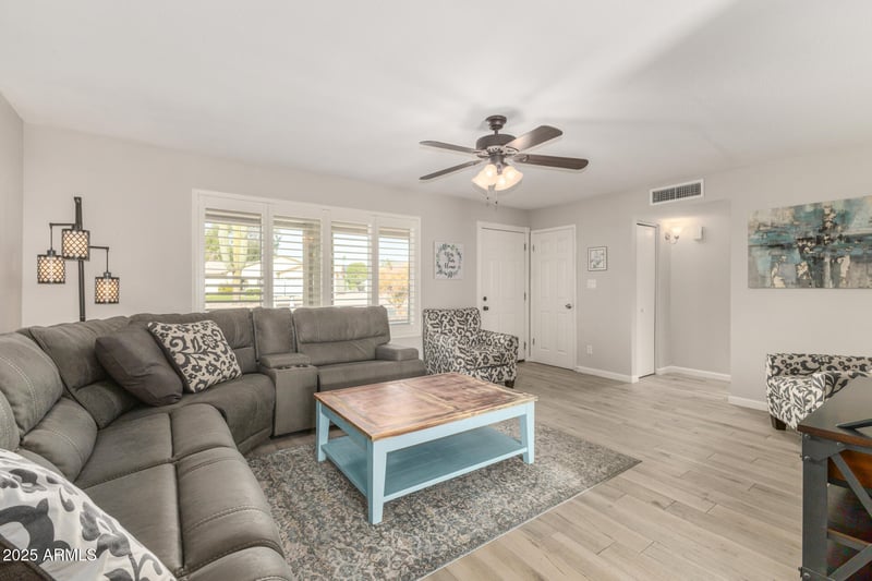 Listing details for 8251 Fay Ave, Mesa, AZ 85208 : Gorgeous 2 bedroom 1.75 bath home completely updated on a Cul-de Sac. This popular Hopi floorplan has split bedrooms and is tastefully decorated and furnished. Kitchen updates include soft close cabinets, granite counters with a marble back splash, elevated ceiling with recessed lighting and high end appliances.