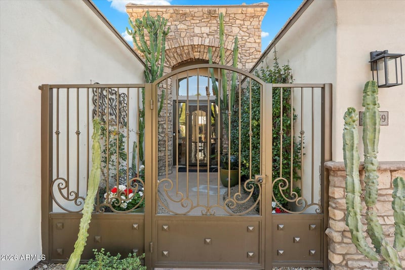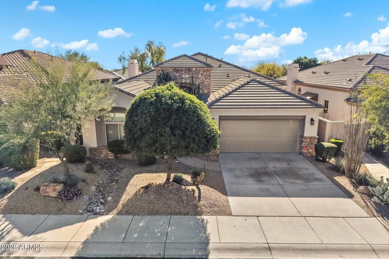 Listing details for 8259 Angel Spirit Dr, Scottsdale, AZ 85255 : ACT FAST, this stunning home will impress all discerning buyers. Ideal lock and leave in the guard gated Peregrine Villages in Grayhawk (Talon). This highly acclaimed 2BR,2BA plus Den Montoro floor plan sits on a very private, sunny South facing backyard with lush mature landscaped grounds and waterfall. Enter this remarkable home through the security gate into a beautiful courtyard. As you step into the rotunda foyer, enter a highly ungraded great room floor plan with plenty of natural light opening to an incredible gourmet kitchen with a large entertaining island complete with bar sitting for 4. The intimate owner's suite with a large highly upgraded master bath and large walk-in closet. Enjoy the beautiful back yard with plenty of private entertaining spaces to enjoy the beautiful back yard with plenty of private entertaining spaces to enjoy the many beautiful sunrises, sunsets with family and friends. You'll enjoy the many upgrades including flooring, bathrooms, kitchen, new appliances, HVAC and roof. Furnishings are included in the list price.