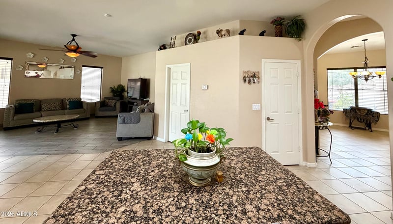 Listing details for 8334 Marlette Ave, Glendale, AZ 85305 : This Gorgeous home, with over 2,200 sqft has Living, Family, Dining and Breakfast rooms, high ceilings, beautiful tile throughout, lots of shelves for your plants/decorations, archs, very large primary bedroom, with walk-in closet, garden tub and walk-in shower, double sinks, private toilet room,HVAC unit only 2 Years old, gas for heating & Water heater, kitchen cabinetry refurbished in 9/2025, windows screens t/out 21/5 Yrs, Roof, alignment 3 Yrs old, Syntetic grass front and back with pavers and beautiful landscaping, RV Gate & lots of concrete for parking, large Covered patio for afternoons with family, 3 car Garages, and much more....
