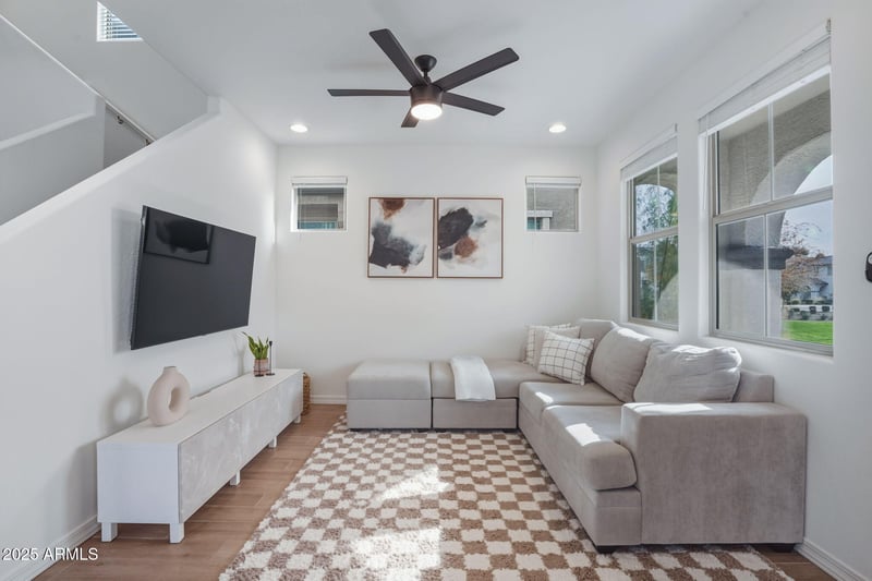 Listing details for 8337 Irwin Ave, Mesa, AZ 85209 : Discover this model-perfect modern home built in 2022, a stunning 3-bedroom, 2.5 bathroom single-family home for sale in East Valley AZ, spanning 1,463 sq ft with designer touches and premium upgrades throughout. Ideal for buyers searching for nearly new construction homes in Mesa, with contemporary style and low-maintenance living in the East Valley. Step inside to beautiful wood plank tile flooring in main areas and cozy carpet in bedrooms, complemented by modern fixtures and high-end finishes. The gourmet kitchen boasts stainless steel appliances, elegant tile backsplash, crisp white cabinets with hardware, ample storage, and a stylish kitchen island with seating that conveys, perfect for everyday meals, prep space, and entertaining in your upgraded 3 bedroom home near Loop 202 and US 60. The highly desirable lot features no house directly in front, offering unobstructed park views in East Valley AZ for added privacy, natural light, and an open, peaceful feel. Enjoy effortless outdoor living with a super clean, low-maintenance backyard featuring artificial turf and paversideal for relaxing or hosting in Arizona's beautiful weather. Additional upgrades include an epoxy-coated garage floor with built-in storage racks and a soft water system for ultimate convenience. This move-in ready modern home in East Valley is truly turnkey and showcases impeccable designer details in every room. Prime location with easy access to Loop 202 and US 60 freeways, putting shopping, dining, entertainment, and top East Valley amenities just minutes away in Mesa, Gilbert, or Chandler. The welcoming community offers a resort-style pool, multiple parks, and family-friendly spaces with community amenities. Don't miss this exceptional nearly new 3 bedroom home for sale in East Valley Arizona! Perfect for those searching for upgraded single family homes near freeways with direct park views, kitchen island, stainless steel appliances, artificial turf backyard, and community pool.