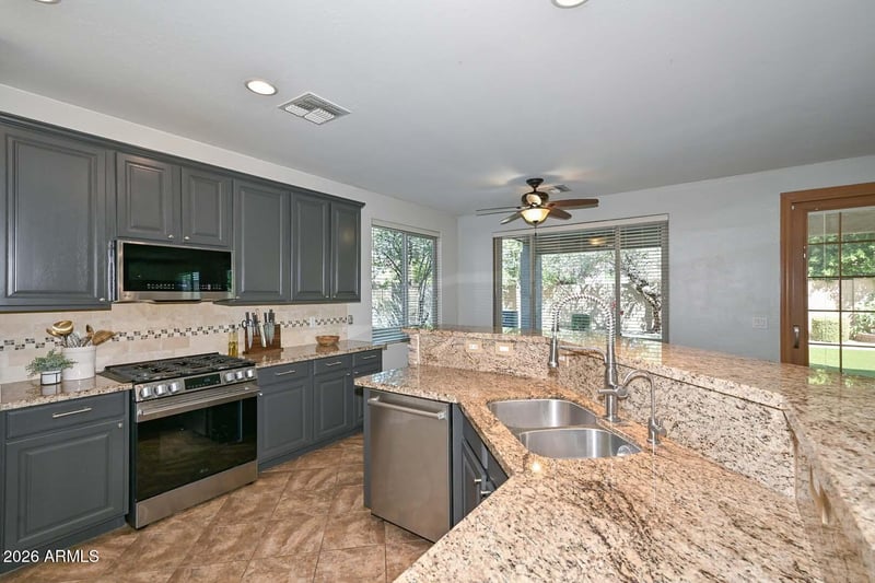 Listing details for 8352 Molly Ln, Peoria, AZ 85383 : Located in the desirable WestWing Mountain community, this beautifully updated 4-bedroom, 3-bath home with a den offers the perfect blend of comfort and style. The recently remodeled backyard features pavers and artificial turf, creating a clean, low-maintenance outdoor space ideal for relaxing or entertaining. Recent improvements include new exterior paint in 2026, new windows, and a new refrigerator and oven. With flexible living space, tasteful updates, and a sought-after Peoria location near parks, trails, and top amenities, this home is move-in ready and a must-see.