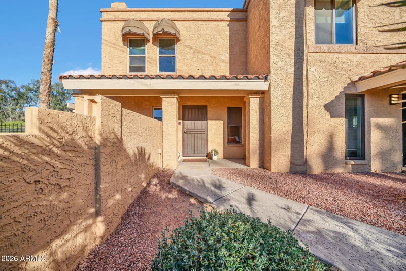 Listing details for 837 Peoria Ave #2, Phoenix, AZ 85020 : Wonderful 2 bedroom, 1 bath townhome in desirable Pointe Tapatio—resort living at its finest! This corner unit backs to a lush greenbelt and offers beautiful mountain views from the oversized private patio featuring a cozy fireplace, perfect for relaxing or entertaining. The kitchen boasts maple cabinetry, granite countertops, and a convenient breakfast bar. French doors open to the patio, creating seamless indoor-outdoor living. Upstairs you'll find two bedrooms and a full bath, while the main level offers an inviting living area and half bath. Enjoy an unbeatable location close to downtown Phoenix with easy access to Sky Harbor. Walk your dog to the nearby dog park, hike the Phoenix Mountain Preserve trails, then cool off in one of the community's four sparkling pools. A true desert oasis!