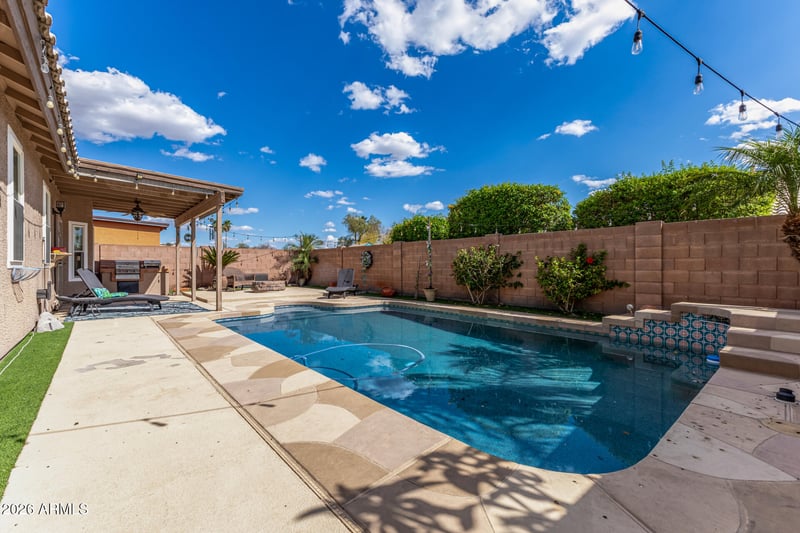 Listing details for 8423 Dahlia Dr, Peoria, AZ 85381 : Move in ready home w/ stylish updates throughout! The modern kitchen features SS appliances, quartz counters, white cabinetry and a large island w/ breakfast bar. Updated baths and upgraded flooring throughout, with only one bedroom w/ carpet. The Primary suite offers a walk-in closet and beautifully updated walk in shower. Versatile 4th bedroom currently used for storage can easily be converted to suit your needs by removing shelving. Enjoy the private oasis backyard w/ sparkling pool, firepit, low-maintenance turf and covered patio-perfect for entertaining or just relaxing. This home also has owned solar and new windows for savings on those electric bills!