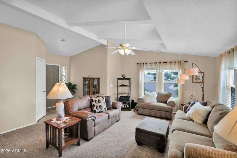 Listing details for 8500 Southern Ave #455, Mesa, AZ 85209 : Beautifully updated, well maintained & FULLY FURNISHED 2-bedroom, 2-bath home featuring a desirable split-bedroom plan for added privacy. Enjoy formal living & dining rooms plus an open-concept kitchen, dining, & great room perfect for entertaining. The kitchen showcases a new dishwasher, & wood-type flooring, flowing seamlessly into the main living space. The spacious primary suite offers a large, remodeled bath with new cabinetry & counters. New windows throughout, including two sliding glass doors enhance natural light, energy efficiency & indoor-outdoor living. Step outside to a tiled covered patio & bonus paved side yard, ideal for relaxing or hosting gatherings, along with a shed for additional storage. A true turnkey, move-in ready opportunity-just bring your suitcase!