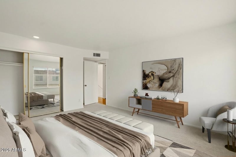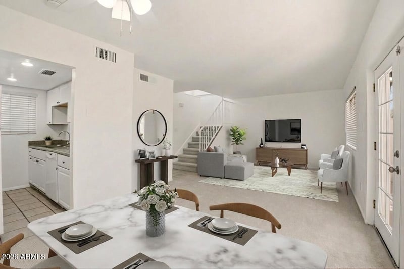 Listing details for 8502 Central Ave #5, Phoenix, AZ 85020 : The unit features new luxury carpet, fresh paint, and natural lighting. Highlights include elegant French doors, a generous family room with a dining area, and a stylish kitchen with crisp, white cabinetry and all appliances included. For convenience, a powder room is downstairs. Outdoor Space & Amenities Enjoy relaxing on the front patio or in the fenced backyard area. The 27-unit complex also features a sparkling community pool and ramada, perfect for socializing and cooling off. Parking & Laundry The unit includes two assigned covered carport parking spaces and a private indoor laundry room. The Arizona Canal Bike Path, a 72-mile multi-use trail spanning Peoria, Phoenix, Scottsdale, and Mesa is minutes away from this home. This condominium is on Central Avenue. Residents enjoy immediate access to: - OHSO Brewery & Distillery - Timo Wine Bar (featuring a wood fire pizza oven) - Walmart Neighborhood Market and shopping center - Murphy Bridle Path and the Arizona Canal walking/bike path, allowing travel to Scottsdale or Peoria. - Easy access to Piestewa Peak, local parks, restaurants, and entertainment.