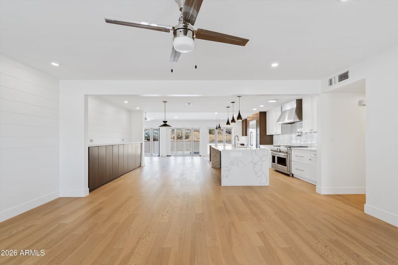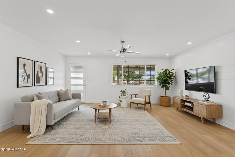 Listing details for 8515 13th Pl, Phoenix, AZ 85020 : Beautifully updated home with modern finishes and a desirable open floor plan. The chef's kitchen features upgraded cabinetry, quartz countertops with waterfall edges, custom backsplash, premium appliances, and a large island perfect for gathering. The spacious primary suite offers a spa-like bathroom with dual vanities, freestanding soaking tub, walk-in shower, and custom closet. Secondary bathroom includes an updated vanity and tiled shower/tub. Situated on an expansive 1/3-acre lot with stunning mountain views, this home offers a large grassy area and extended patio ideal for entertaining. Move-in ready with style, space, and views--don't miss this opportunity!