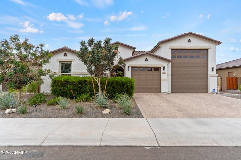 Listing details for 8518 186th Ln, Waddell, AZ 85355 : MILLION DOLLAR VIEW, RV GARAGE, OWNED SOLAR, & FLEX ROOM. Elegant single story floor plan with amazing views of the White Tank foothills. Interior upgrades: Expanded gourmet kitchen with upgraded appliances, refrigerator, under cabinet lights and ceiling fans with lights in all bedrooms and den/office, two RO systems, extra large primary bath shower, built-in sink and upper cabinets in laundry room, man doors both garages, EV charging plug in garage. Backyard includes a custom build pool and a brand new $20k spa! Lemon/lime trees... and AMAZING SUNSETS. Plenty of storage on the side yard too. Garage comes with cabinets.