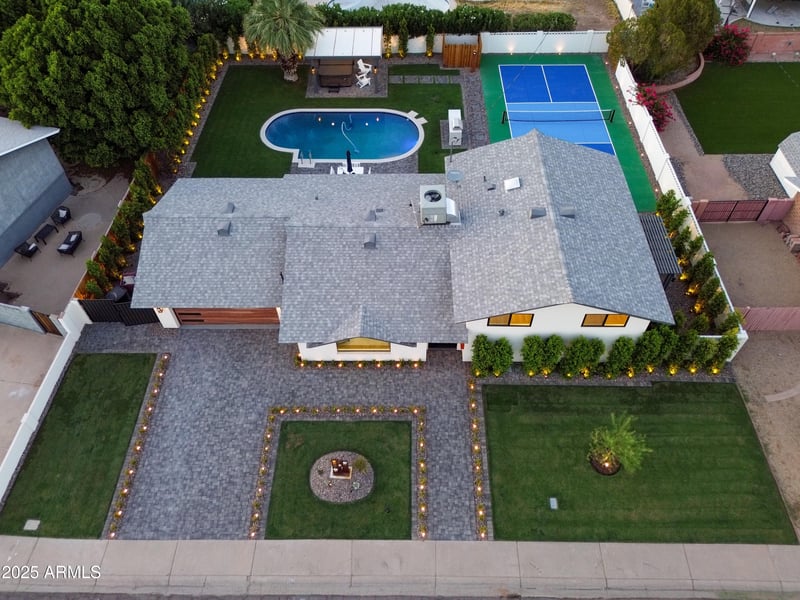 The backyard has been intentionally designed to maximize lifestyle AND income potential. A heated pool and spa, outdoor movie projector, multiple covered patios, built-in gas BBQ, manicured grass area, and a championship-size pickleball court create a true resort-style experience that appeals to both owners and luxury vacation renters.