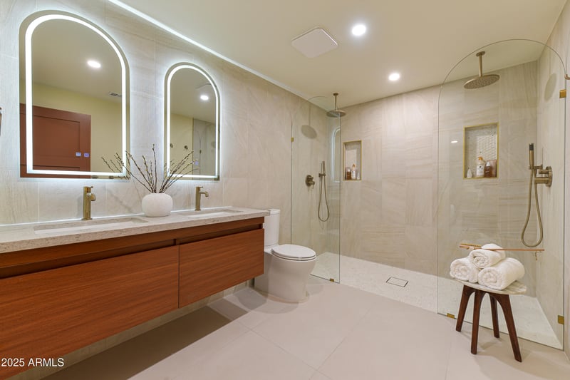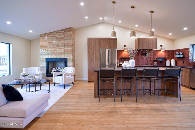 Listing details for 8532 San Miguel Ave, Scottsdale, AZ 85250 : A Thoughtfully Executed, High-Quality Rebuild. This 4-bedroom, 3-bath residence has been completely remodeled down to the studs with an uncompromising focus on craftsmanship, longevity, and livability. This is not a cosmetic flip. Every major system has been fully replaced, including dual-pane windows, electrical, plumbing, sewer line, and a modern HVAC system, ensuring efficiency, reliability, and long-term value. Inside, the home showcases hand-finished real wood flooring, vaulted ceilings, LED can lights, & glass french doors that make it feel airy & light. Finishes and materials were selected for both durability and timeless appeal. The chef's kitchen is designed to perform, featuring leatherized Dekton countertops, a professional-grade Wolf gas range, custom cabinetry, and a generous island that functions seamlessly for daily living, entertaining, or high-volume guest use.