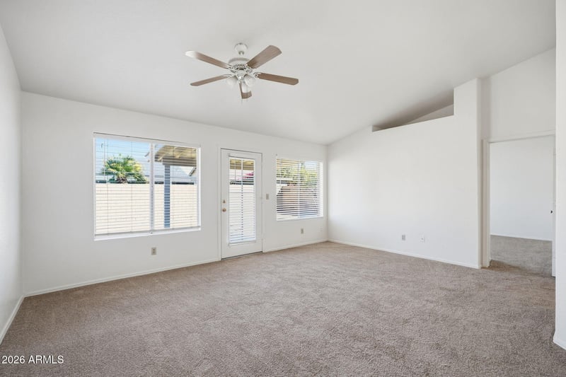 The huge backyard offers a blank canvas, ideal for adding a pool, outdoor kitchen, or custom entertainment space. A neighborhood park is within walking distance, adding to the home's appeal. Conveniently located near Camelback Ranch, Glendale Arena, State Farm Stadium, Desert Diamond Arena, and Westgate.