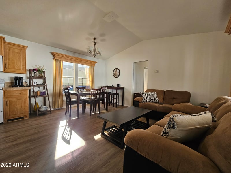 Listing details for 8700 University Dr #252, Mesa, AZ 85207 : This beautifully maintained two-bedroom, two-bath home features an inviting open floor plan with soaring vaulted ceilings, complemented by brand-new flooring throughout and freshly painted interiors and exteriors. Step outside onto the expansive, covered private deck, which comes fully furnished--perfect for relaxing or entertaining in the fresh air. Inside, the home is also furnished, creating a comfortable and welcoming atmosphere. Additional amenities include a spacious storage shed, a golf cart, and a BBQ grill, making this property exceptionally well-equipped.