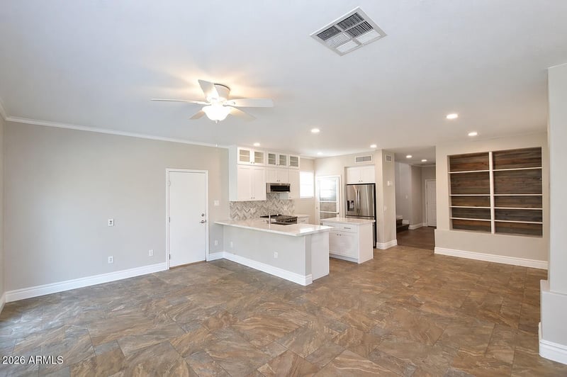 Listing details for 8756 Lobo Ave, Mesa, AZ 85209 : Charming curb appeal with low-maintenance artificial turf and a full 2-car garage set the tone for this beautifully updated home. Light and bright throughout, the interior features upgraded kitchen cabinetry, quartz countertops and a highly functional floor plan with laminate and tile in all the right places. Offering 3 spacious bedrooms, this home is tucked within a well-maintained gated community with lush trees and inviting surroundings. Step outside to your private heated pool with a travertine deck, perfect for relaxing or entertaining. A rare opportunity to find this level of upgrades, amenities, and value all in one property.