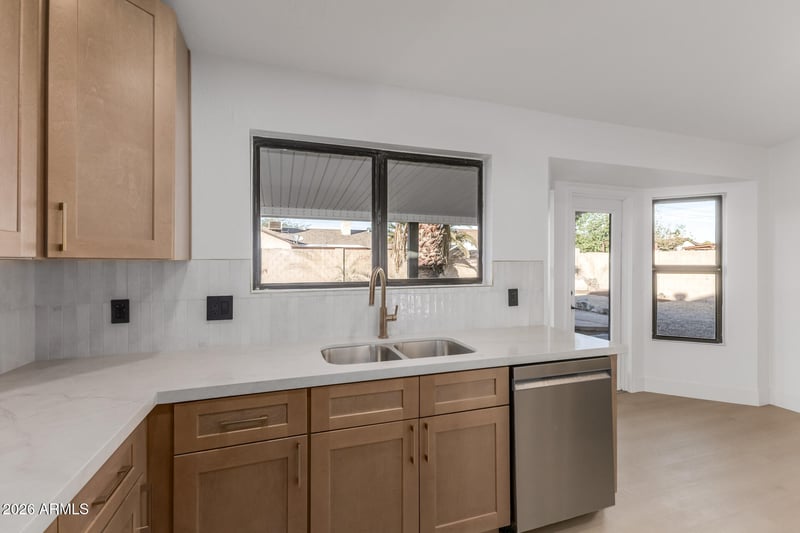 Listing details for 8938 Echo Ln, Peoria, AZ 85345 : This 3-bed, 2-bath single-family home has been transformed from top to bottom! The gorgeous KITCHEN showcases brand new cabinets, sleek quartz countertops, and a premium KitchenAid appliance package that will inspire your inner chef. Both bathrooms shine with NEW VANITIES, stylish tile surrounds, and updated plumbing fixtures. NEW LVP FLOORING and plush carpet flow through the home along with new light fixtures or ceiling fans in each room. NEW ROOF provides long-term peace of mind. Fresh INTERIOR & EXTERIOR PAINT creates a crisp, modern canvas throughout. The backyard is an entertainer's dream with a professional LANDSCAPE PACKAGE and LOW-MAINTENANCE SYNTHETIC TURF! Every upgrade has been carefully selected for quality and style. Come see it today!