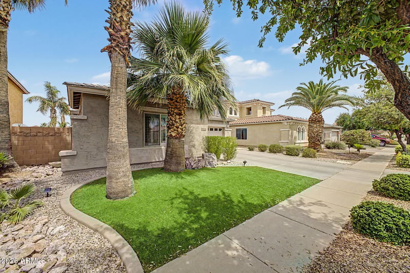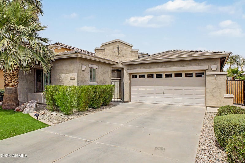 Listing details for 896 Indian Wells Pl, Chandler, AZ 85249 : Pride of ownership shines throughout this enchanting 4-bedroom home w/a 2-car garage! Inside, a harmonious blend of comfort & elegance will greet you, accented by wood-look flooring, plantation shutters, ceiling fans, recessed lighting, & neutral tone. Large living room flows seamlessly into the dining area, where sliding glass doors open to the back patio for easy indoor-outdoor living. Well-appointed kitchen is sure to impress, offering a pantry, abundant cabinetry w/ crown moulding, SS appliances, quartz counters & backsplash, a center island w/a breakfast bar, & a cozy breakfast nook. Double doors lead to the serene main retreat, showcasing a lovely bay window, a walk-in closet, & an ensuite w/a soaking tub. A standout feature of this gem is the fully equipped guest's quarter. Don't miss the wonderful backyard, where you'll enjoy scenic lake views, a covered patio, & a refreshing pool, perfect for relaxing or entertaining. This rare value won't last!
