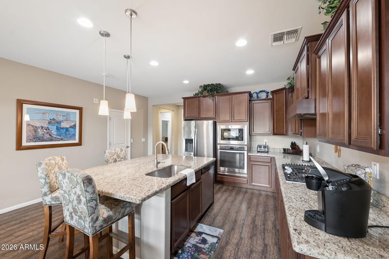 Listing details for 8993 Ruth Ave, Peoria, AZ 85345 : Beautifully maintained 3-bedroom, 2-bath home with additional dedicated office. This light-filled floor plan features updated finishes, stainless steel appliances, and an open-concept living area. Enjoy Arizona living in the private backyard with covered patio and low-maintenance landscaping. Situated on a premium lot with direct access to and views of beautifully maintained greenbelt, offering added privacy and a serene backdrop, perfect for enjoying cool Arizona evenings.