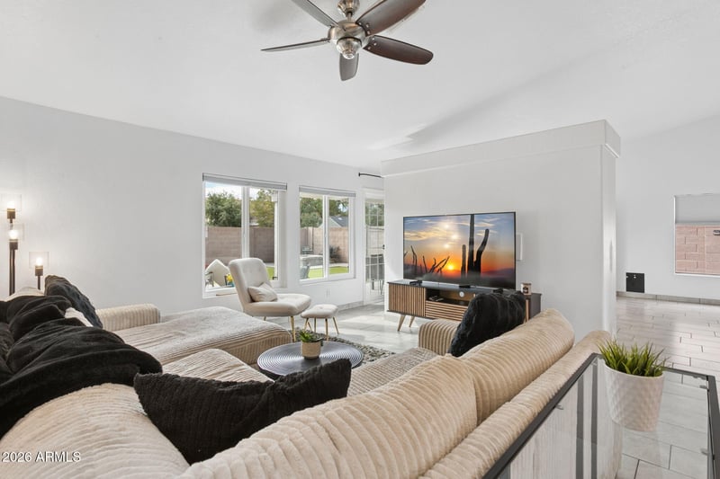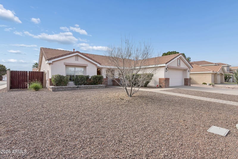 Listing details for 901 Juanita Ave, Gilbert, AZ 85233 : Located in the desirable Cooper Ranch community in Gilbert, this charming 3-bed, 2-bath home sits on a spacious corner lot with ideal north/south exposure. The open floor plan features updated finishes throughout, including beautiful flooring, fresh interior paint, and an upgraded primary bathroom. The kitchen is perfect for everyday living and entertaining, with granite countertops, stainless steel appliances, painted cabinets, and a center island with seating. The oversized primary suite includes a sitting area or study that could easily be converted into a small fourth bedroom or nursery. The home also features fresh exterior paint, new windows in the family room, and brand-new carpet in the primary bedroom. Step outside to a south-facing backyard designed for enjoying Arizona living year-round. Relax under the covered patio, gather around the corner fire pit, or enjoy the low-maintenance turf yard. A new dog run adds extra convenience, and there's plenty of room to add a pool or outdoor kitchen to fit your lifestyle. Conveniently located near the 101 and 60 freeways, shopping, dining, and recreation, this home offers comfort, style, and an ideal Gilbert location. Professional photos on 2/19!