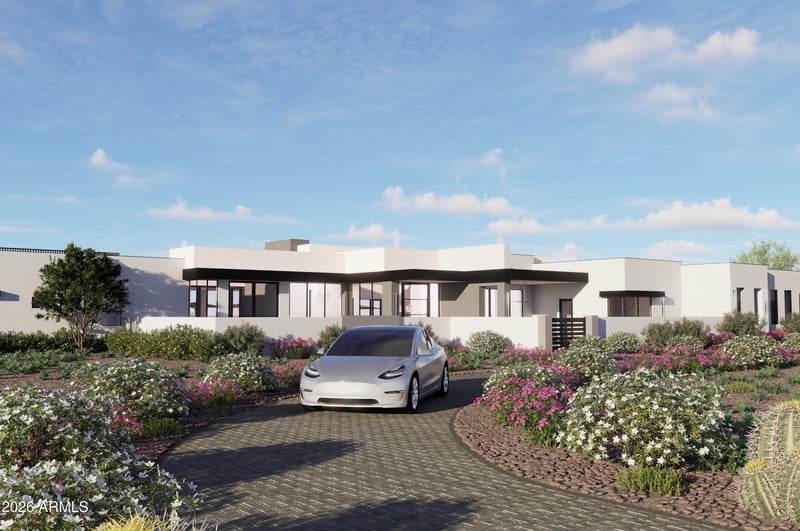 Listing details for 9021 Rimrock Dr, Scottsdale, AZ 85255 : Commanding breathtaking mountain views across nearly 1.7 acres in the prestigious Pima Acres enclave, this newly constructed architectural estate embodies the pinnacle of modern desert luxury. Encompassing 6,792 square feet, the residence features five private bedroom suites, five full baths, two powder rooms, and a versatile flex space thoughtfully designed for elevated living. A welcoming front patio with a statement fireplace sets the tone, offering an intimate vantage point to enjoy sweeping mountain vistas and seamless indoor-outdoor living. Inside, a grand great room anchored by a dramatic stone fireplace flows effortlessly into the chef's kitchen and an elegant dining area highlighted by a striking wine wall--crafted for refined entertaining. The primary suite serves as a true private retreat, complete with a spa-inspired bath, soaking tub, expansive walk-in closet, and a dedicated lounge or wellness space. Throughout the home, curated designer finishes, custom cabinetry, and meticulous craftsmanship reflect an uncompromising attention to detail, complemented by an oversized four-car garage. Outdoors, a resort-caliber setting awaits with an expansive covered patio, outdoor kitchen, cascading pool with swim-up bar, thoughtfully positioned fireplace seating, and a secluded spa--all set against sweeping desert vistas. Ideally located in Scottsdale, this exceptional estate offers a rare fusion of architectural sophistication, privacy, and resort-style living. Developed by Sheshadri Estate Properties, it reflects the brand's signature approach to bespoke luxury--where refined architecture meets intentional, wellness-focused design.