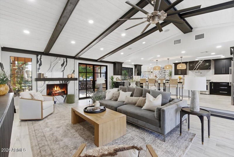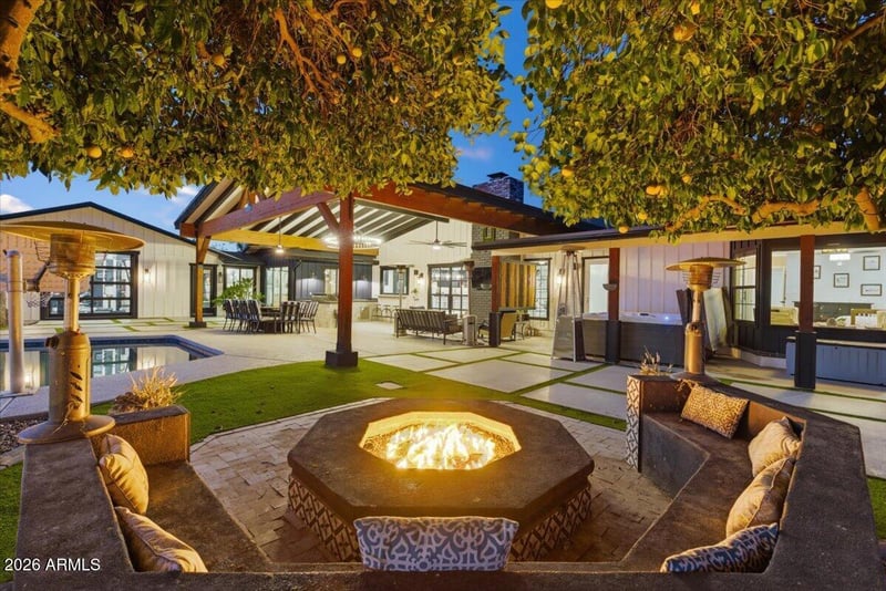 Listing details for 9026 67th St, Paradise Valley, AZ 85253 : When the charm of Arcadia meets the Opulence of Paradise Valley it creates a property that is so Majestic & Warm it has to be Felt and Seen to truly understand the Opportunity you have to call this Masterpiece Home! Pulling into the Roundabout you will be Smitten with the Charm, Beauty & Elegance of the perfectly manicured motor court with parking for 20+ cars. Over a 1400 sq ft 5+ car garage and 2 RV gates on each end of the Estate, there is plenty of room for all of your Toys. Stepping through the front door you can feel the Warmth & Labor of Love that went into this home. With 4 Beds, 3.5 baths, a second living/office and a Massive Gym/Game Room with a Glass Garage door that opens up to the Pool, it's simply Perfect. Beautiful Kitchen with Amazing Mummy Mountain Views, Flip out pass through Window to the Patio & BBQ. A 10ft island with seating for 5 overlooks the Cozy yet large Living Room with Gas Fireplace. The Dining room is set to take in the views of the Mountain and a Backyard that goes on forever, it looks & feels as if you are in a Park. The Gym/Game Room is perfectly placed at the far end of the house for maximum privacy from the rest of the Tranquil Home. The primary Suite looks over your vast property with songs of Rosy Faced Love birds (African Parrots) to greet your ears each morning out your window. The Primary bath is nothing short of an in home Spa with its floor to ceiling tile, Huge Soaking tub, Heated towel warmer and a Huge Shower room with 2 heads, wands and a bench to relax. Also with access to the backyard & Hot Tub right outside your door. Moving Outside is where the Magic really starts to come alive. Double Iron Doors from the Living room take you to the BBQ, Sink & pass through Kitchen Window along with a Grand Vaulted Patio with Outdoor Living & Dining area. Perfectly placed pool to capture the views and enjoy Diving off the giant boulder, sliding down the slide or shooting hoops in the pool with your friends & Family. After that enjoy, a full size Shuffle Board Court, Chipping onto to your putting green, or kicking field goals on your private 33 yard football/turf playground. Mature Lemon, Orange & Grape Fruit trees gives you all the fruit you will ever need. For a chilly night or a days end night cap, light the fit pit and seating for 10 around the pool or relax under the Pergola and let the fireplace and park like setting wind down your day. With all this, there is still plenty of room for a Guest House or Toy Barn. To find a space such as this with the privacy and wonder is something that you truly must See to Believe. So come see it Today before it's Gone!!