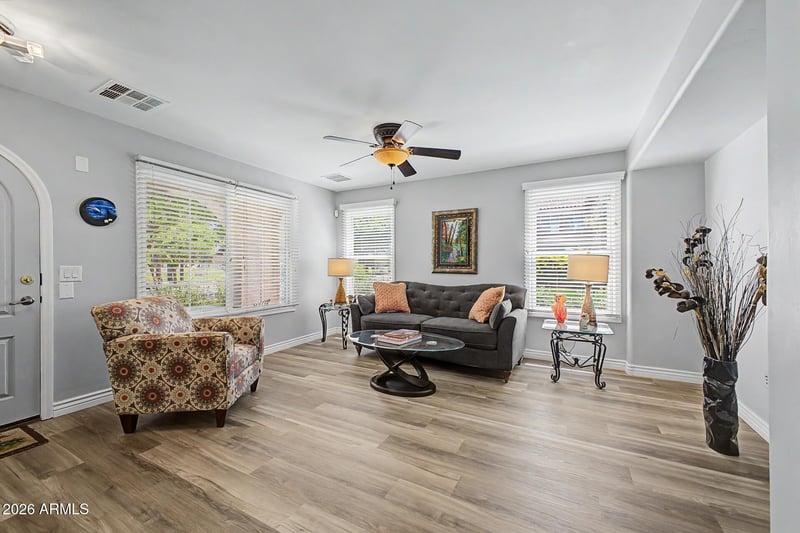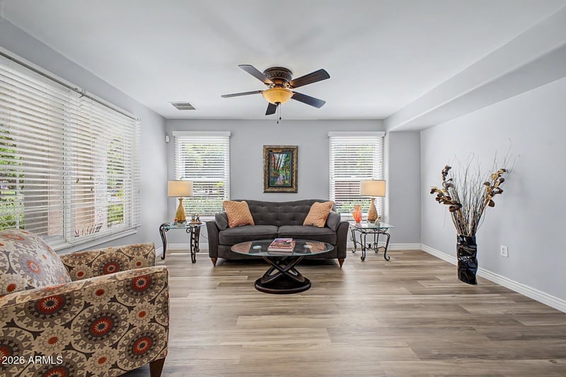 Listing details for 905 Osborn Ln, Gilbert, AZ 85296 : Welcome to Cooley Station in Gilbert-where charm meets convenience! Located on a tree-lined street in one of the area's most desirable communities, this spacious 3-level corner unit townhome offers 2,187 sqft of thoughtfully designed living space. Located directly across from the community pool, enjoy added privacy and resort-style amenities just steps away. Freshly updated and move-in ready, this home features brand new LVP flooring, fresh interior and exterior paint, and a smart thermostat for modern comfort and efficiency. The well-maintained A/C adds peace of mind, and convenient guest parking is nearby.The main level offers a versatile flex space--ideal for a home office, gym, or playroom. The second level features an open-concept kitchen and living area, plus a formal dining space perfect for entertaining. The kitchen includes stainless steel appliances, a walk-in pantry, and abundant cabinetry. All bedrooms are on the third level, including a generous primary suite with dual vanities, walk-in closet, separate tub and shower, and private water closet. Additional highlights include a two-car garage, water softener, and overhead storage. A perfect blend of style, function, and location!