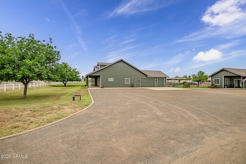 Listing details for 9104 229th Dr, Buckeye, AZ 85326 : Experience refined country living on this immaculate 2.3 acre horse property with mountain views and exceptional detail throughout. The main residence offers just under 3,000 sqft of thoughtfully designed living, complemented by a fully detached guest house with 476 sqft, kitchen, bedroom, and bath. Inside the main home, quality craftsmanship and thoughtful design are evident with wood flooring, massive beams, an upgraded kitchen with stainless appliances, raised dishwasher, and a walk-in pantry. Soaring ceilings and natural light create an open, inviting flow. Designed for both lifestyle and function with paid solar, private well, flood irrigation, 5-car garage, and a complete horse setup including lush pasture, stalls, and wash rack. See the full list of upgrades and features in docutab.