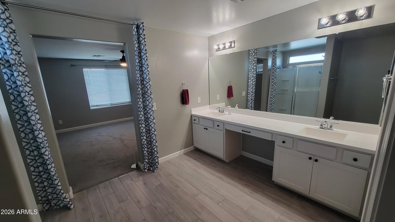 Listing details for 9189 98th Ave, Peoria, AZ 85345 : Don't miss this stunning Property near the 101, Cardinal stadium, Park West, & much morel listed at the end!! Located in the heart of Trenton Park. Exquisite 4 Bed, 3 Bath ,3 car tandem garage w/ work area. This 2019 build includes Low-E Windows, stunning plank wood tile & Berber carpet flooring, 9 ft ceilings. On the 1st floor, 1 large bedroom and the after build updated walk in shower bathroom, Open Office/Den, large Great room off of the Kitchen, with the Grand Kitchen.. You'll love the Grand kitchen w/ Quartz countertops, kitchen island, double oven, & Extra large panty. Upstairs is the Extra Large Primary Suite and Full bathroom with built in cabinetry. The other 2 bedrooms upstairs are extra spacious as well! Laundry room and very large loft are also upstairs. The Backyard feature The Backyard features an extended patio, paver sitting area, & turf/artificial grass. Westgate: Shopping - Entertainment - Restaurants - Schools - Golf Courses - Hospitals and less than a mile from the 101. Residents enjoy access to a community park and private gated entry to a scenic New River with walking paths and trails, offering a perfect blend of tranquility and outdoor connection.