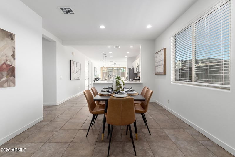 Listing details for 9239 Sells Dr, Phoenix, AZ 85037 : Seller offering up to 1% buyer credit toward closing costs or interest rate buydown with a full-price offer. Welcome to this well-maintained single-level home located in the gated Western Enclave community. Situated on a corner lot, the property features 3 bedrooms, 2 bathrooms, a 2-car garage, and mature landscaping. The interior offers abundant natural light, a neutral color palette, tile flooring in the main living areas, and carpeted bedrooms. The floor plan includes a formal living room and an open great room with sliding glass doors leading to the backyard. The kitchen is equipped with stainless steel appliances, quartz countertops, recessed and pendant lighting, white cabinetry, a pantry, and both an island and peninsula with breakfast bar seating. The primary suite includes an ensuite bathroom with dual sinks and a walk-in closet. The backyard is designed for low-maintenance outdoor living and features a covered patio and artificial turf. Conveniently located and move-in ready.