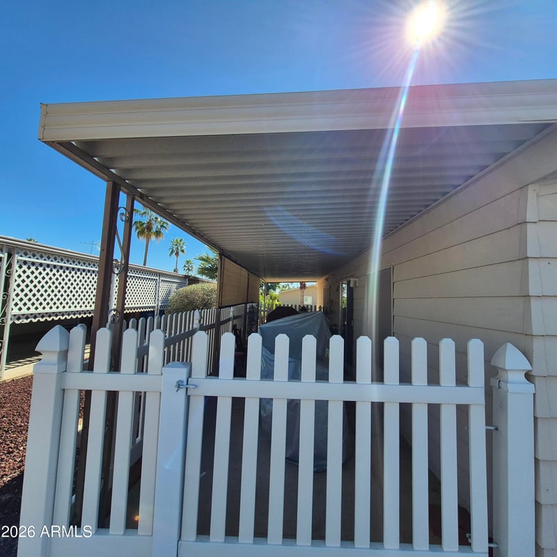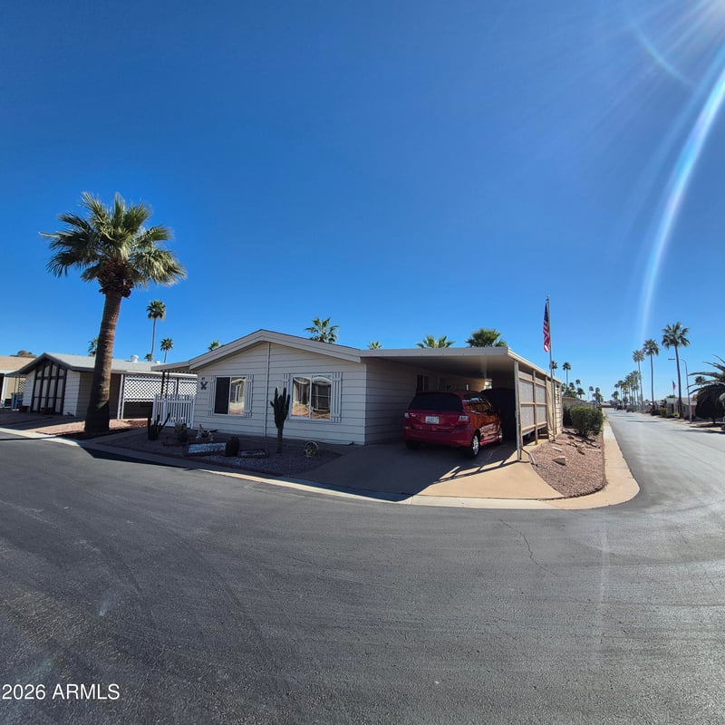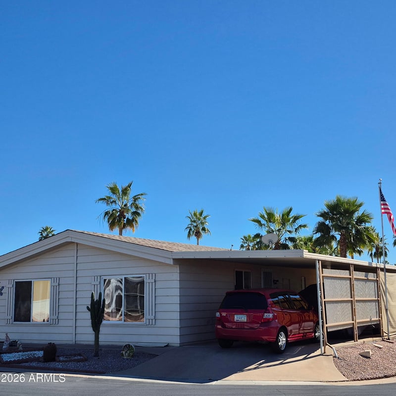 Listing details for 9302 Boardway Rd #82, Mesa, AZ 85208 : Beautiful 24x40 double-wide in desirable Holiday Palms 55+ community! This well-maintained 2-bedroom, 2-bath home features a spacious living room, bright kitchen with ample cabinetry, and a generous primary suite with private bath. Enjoy Arizona living on the large covered patio perfect for relaxing or converting into an Arizona room. Includes covered carport, storage shed, and private fenced outdoor space. Holiday Palms offers an active lifestyle with great amenities in a friendly, well-kept community.