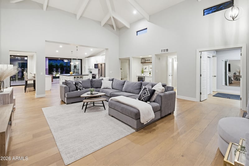 Listing details for 9402 83rd Ct, Scottsdale, AZ 85258 : Tucked at the end of a quiet cul-de-sac in McCormick Ranch, this fully reimagined home blends thoughtful design with true functionality - ideal for everyday living and effortless entertaining. Just minutes from the highly sought-after 3 C's school district and walkable to the greenbelt, Cochise Elementary, Mountain View Park, nearby restaurants, and more - the location offers unbeatable convenience. This is far more than a cosmetic remodel. A newly constructed addition introduces an ensuite bedroom, expanded laundry space, and a 3-car tandem garage - an uncommon and valuable upgrade for the area. Nearly every component of the home has been updated, with major systems already addressed to provide peace of mind. Improvements include newer roof sections, dual AC units, newer water heater, updated pool equipment, and Milgard windows throughout plus PRL sliding doors - helping eliminate near-term capital expenses. Inside, the home is filled with natural light and designed with a desirable split floor plan. The open layout is anchored by an inviting great room with soaring ceilings featuring wide-plank wood flooring, smooth-finish walls, and a clean, modern aesthetic throughout. The kitchen is both functional and welcoming, complete with stainless appliances and an oversized island that naturally becomes the heart of the home. The backyard has been completely reimagined to create a true extension of the living space - perfect for relaxing or entertaining. A stunning covered patio with a wood slat ceiling and serene gas fireplace sets the tone, alongside a pebble-tec pool & spa with new travertine decking, gas-heated system, dedicated vacuum line, built-in BBQ, and a 120-gallon propane system. With its combination of thoughtful expansion, high-quality upgrades, incredible natural light, and a highly functional layout, this is a rare opportunity to own a truly special home in one of Scottsdale's most desirable communities.