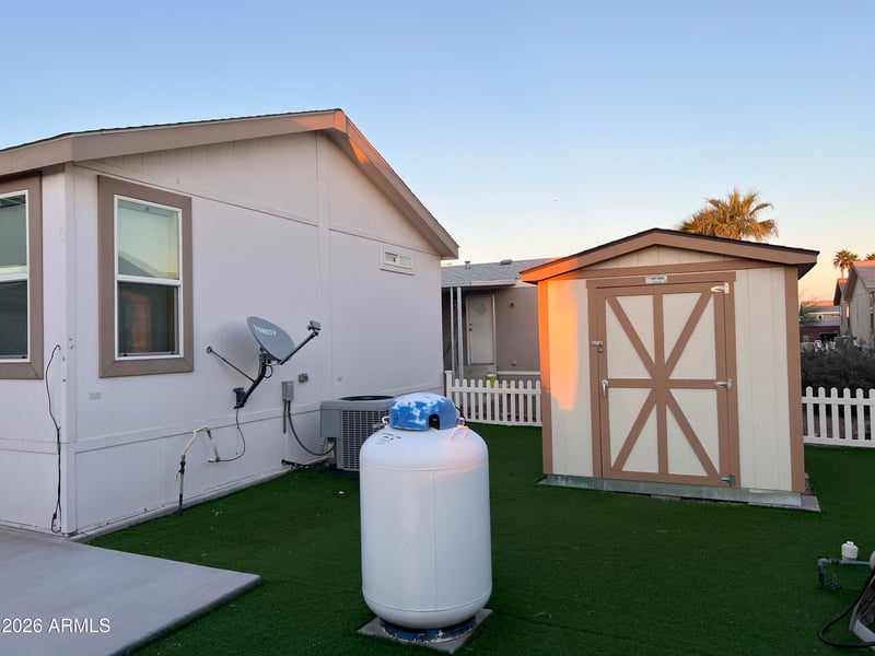 This home is modern and well maintained and has plenty of upgrades. The back yard also has a great storage room so will have a place for your tools or toys. Inside has a large Kithen and valuted ceilings.